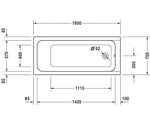 1700 x 750 mm矩型, 带一个倾斜靠背, 出水口位于脚部, ´卫浴亚克力